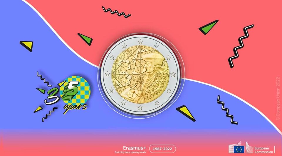 Με την ευκαιρία συμπλήρωσης τριάντα πέντε χρόνων ύπαρξης του Προγράμματος Erasmus+, έχει αποφασιστεί όπως, από την 1η Ιουλίου, ένα αναμνηστικό κέρμα των 2 ευρώ τεθεί σε κυκλοφορία. Θα εκδοθούν περίπου 37 εκατομμύρια κέρματα. Το σχέδιο του νομίσματος έχει επιλεγεί μετά από διαγωνισμό, στον οποίο συμμετείχαν πέραν των 72.000 ατόμων. Το κοινό ανέδειξε το σχέδιο του…